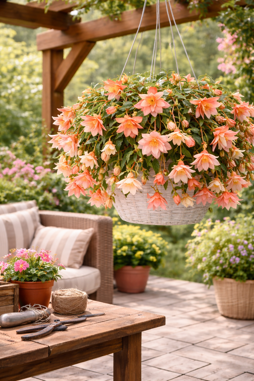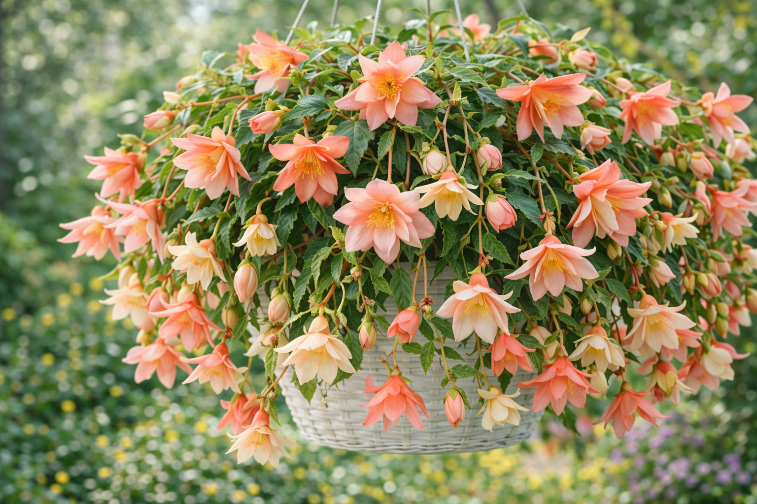 Begonia ‘Groovy Salmon Bicolour’ to idealny wybór dla osób szukających oryginalnej kolorystyki, bujnego kwitnienia i eleganckiego efektu przez całe lato .