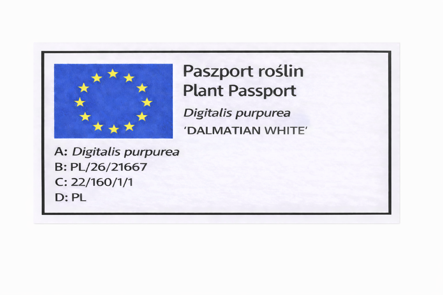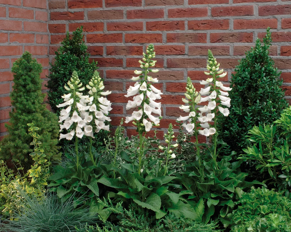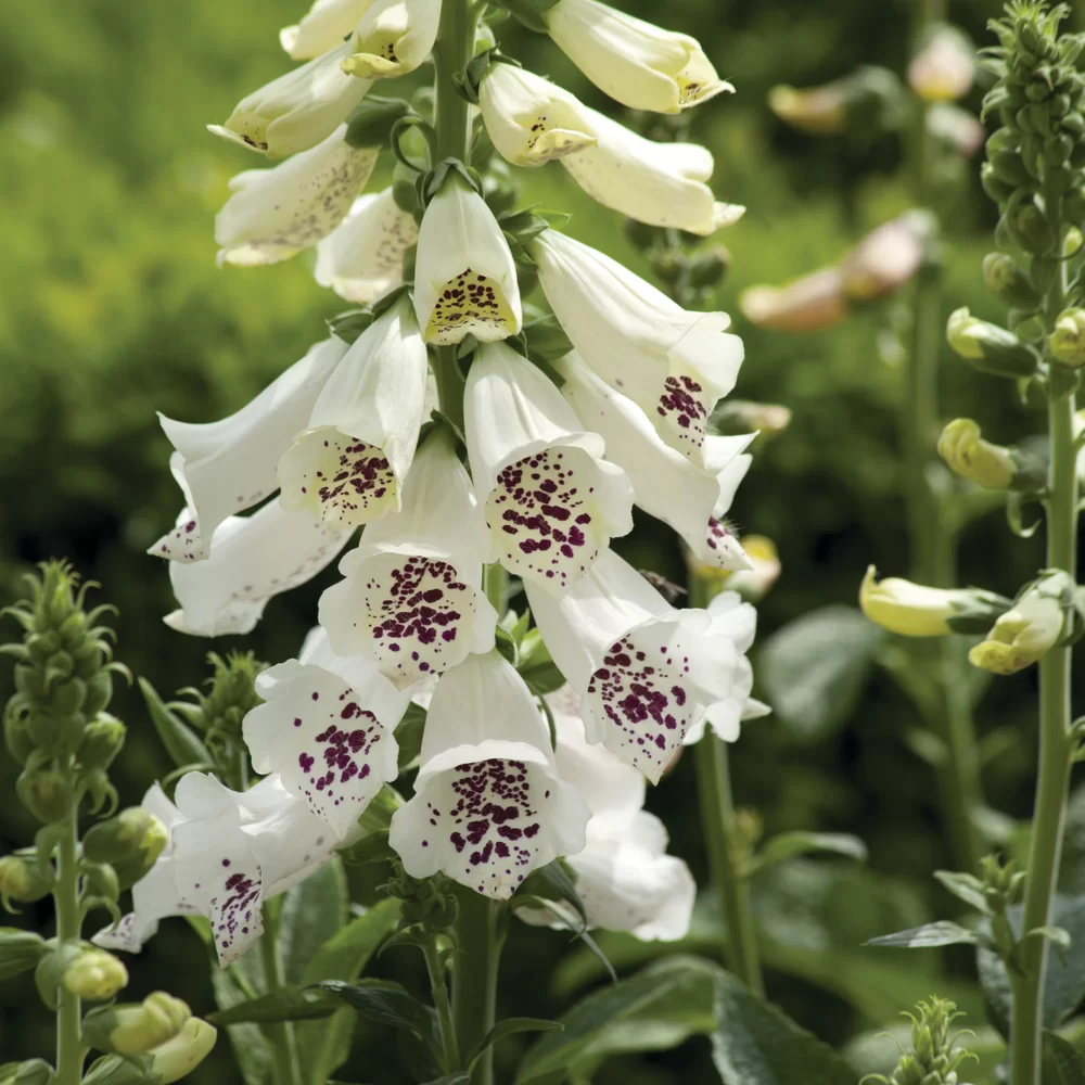 Digitalis ‘Dalmatian White’ to nowoczesna, mieszańcowa odmiana naparstnicy wyróżniająca się śnieżnobiałymi kwiatami osadzonymi na silnych, wyprostowanych pędach. Kwiaty mają subtelnie nakrapiane wnętrze, które dodaje im elegancji i lekkości. Odmiana z serii Dalmatian charakteryzuje się zwartym pokrojem i wcześniejszym kwitnieniem – często już w pierwszym roku po wysadzeniu.