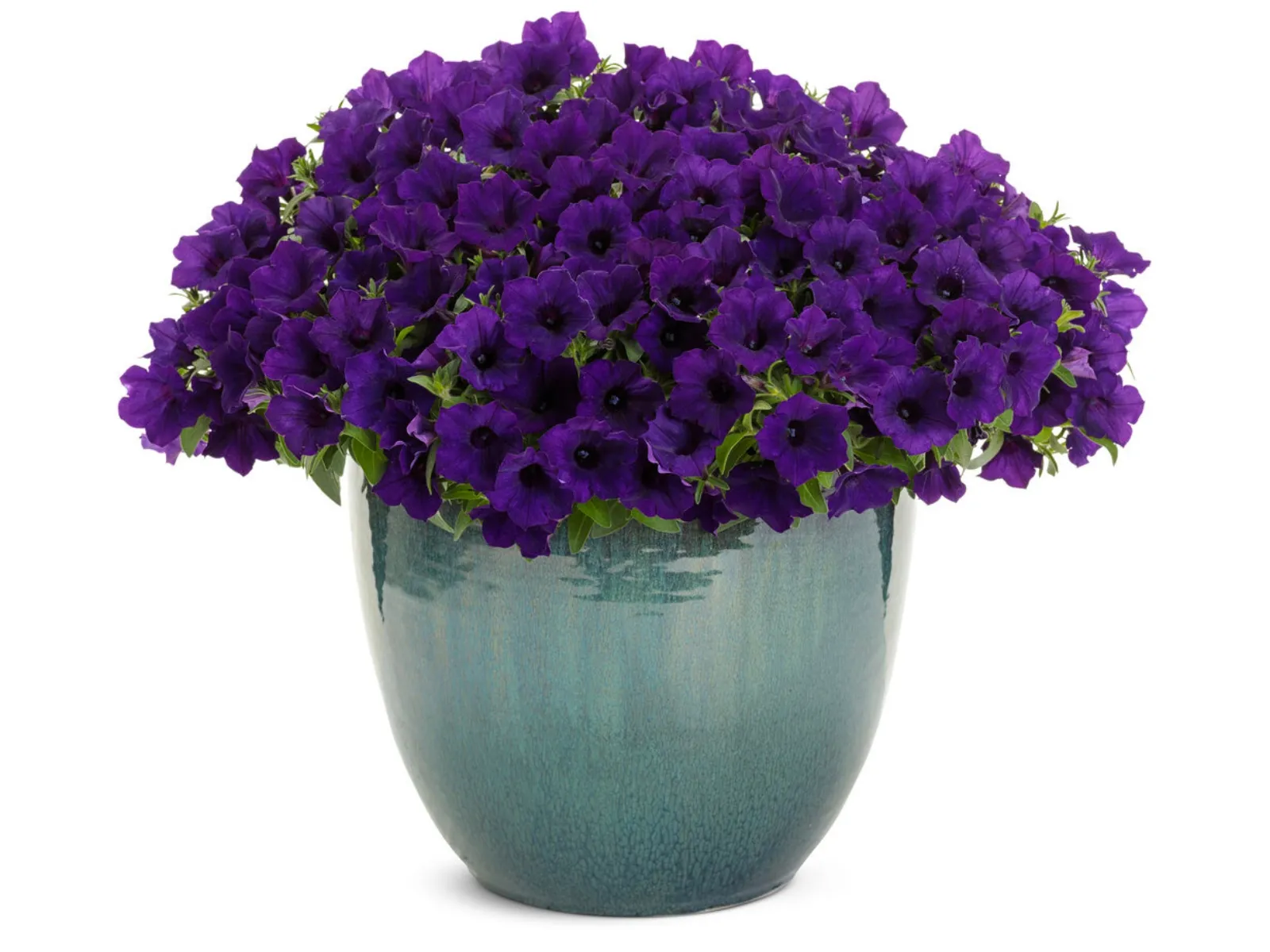 Supertunia Mini Vista Ultramarine to karłowa odmiana o półkulistym, zwartym pokroju i głęboko niebieskich, niemal ultramarynowych kwiatach z delikatnym, aksamitnym połyskiem. Kwiaty średnicy 4-5 cm gęsto pokrywają roślinę, tworząc zwartą kulę kwiatową o intensywnym, królewskim kolorze. Odmiana charakteryzuje się kompaktowym wzrostem (osiąga 20-30 cm wysokości i 35-45 cm szerokości) oraz doskonałym rozkrzewieniem, kwitnąc obficie od maja do pierwszych przymrozków.