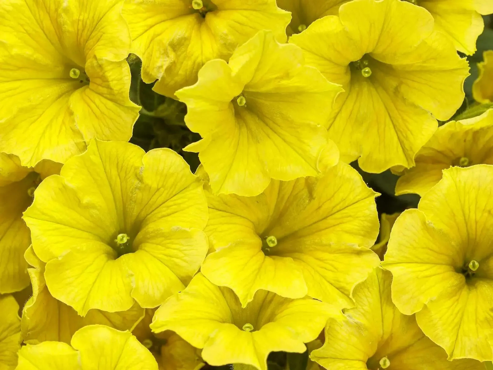 Supertunia Mini Vista Yellow to karłowa odmiana o półkulistym, zwartym pokroju i intensywnie żółtych, niemal słonecznych kwiatach z delikatnym, jedwabistym połyskiem. Kwiaty średnicy 4-5 cm gęsto pokrywają roślinę, tworząc zwartą kulę kwiatową o czystej, żywej żółcieni bez przebarwień. Odmiana charakteryzuje się kompaktowym wzrostem (osiąga 25-35 cm wysokości i 40-50 cm szerokości) oraz doskonałym rozkrzewieniem, kwitnąc obficie od maja do pierwszych przymrozków.