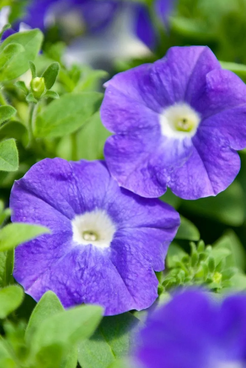 Surfinia Ocean Blue (Petunia x atkinsiana 'Ocean Blue’) to popularna roślina jednoroczna o silnym, kaskadowym pokroju. Wyróżnia się długimi, wiotkimi pędami, które mogą osiągać nawet do 1 metra długości, tworząc gęste, kwiatowe zasłony. Prawdziwym atutem tej odmiany jest ogromna ilość lejkowatych kwiatów w urzekającym, ciemnym, błękitno-fioletowym kolorze, często z ciemniejszymi żyłkami, co dodaje im głębi. Kwitnie nieprzerwanie i bardzo obficie, od maja aż do pierwszych przymrozków, zapewniając ciągłą i spektakularną dekorację.