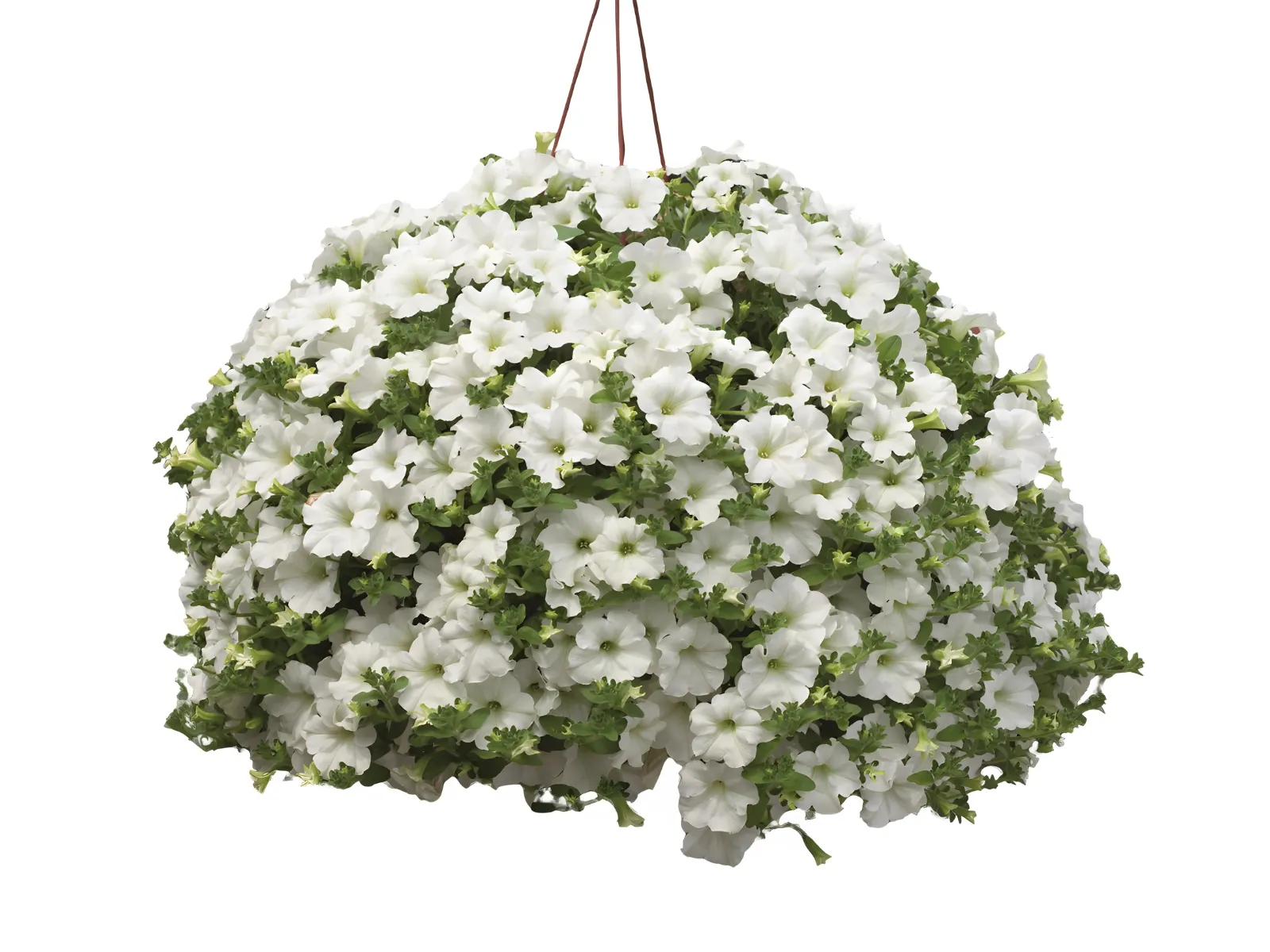 Surfinia White (Petunia x atkinsiana 'Surfinia White’) to niezwykle popularna, jednoroczna petunia kaskadowa o bardzo silnym wzroście. Tworzy długie, wiotkie pędy, które mogą osiągać nawet do 1 metra długości, tworząc gęste, kwiatowe zasłony. Prawdziwym atutem tej odmiany jest ogromna ilość lejkowatych kwiatów w czystym, śnieżnobiałym kolorze. Kwitnie nieprzerwanie i bardzo obficie, od maja aż do pierwszych przymrozków, zapewniając ciągłą i spektakularną dekorację.